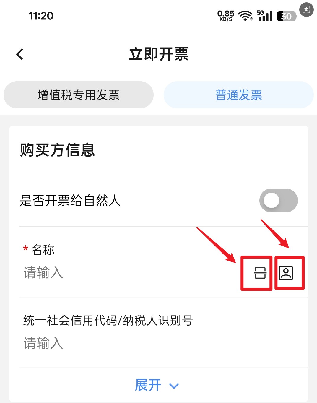 5、选择开具类型,是专票还是普票